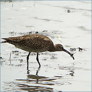 下に曲がった長い嘴を持つ大型のシギ。旅鳥として干潟や入り江、水田や海岸の草地などに渡来し、カニやゴカイ等を捕食する。